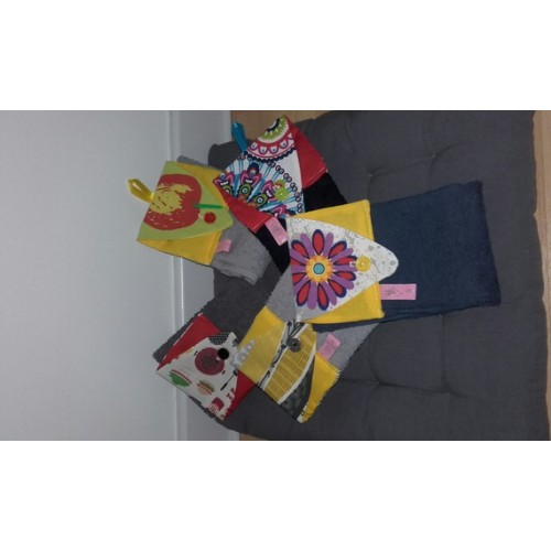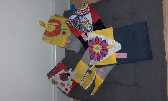 réalisé en coton et en éponge il s'accroche aux poignées de four ou de meuble.