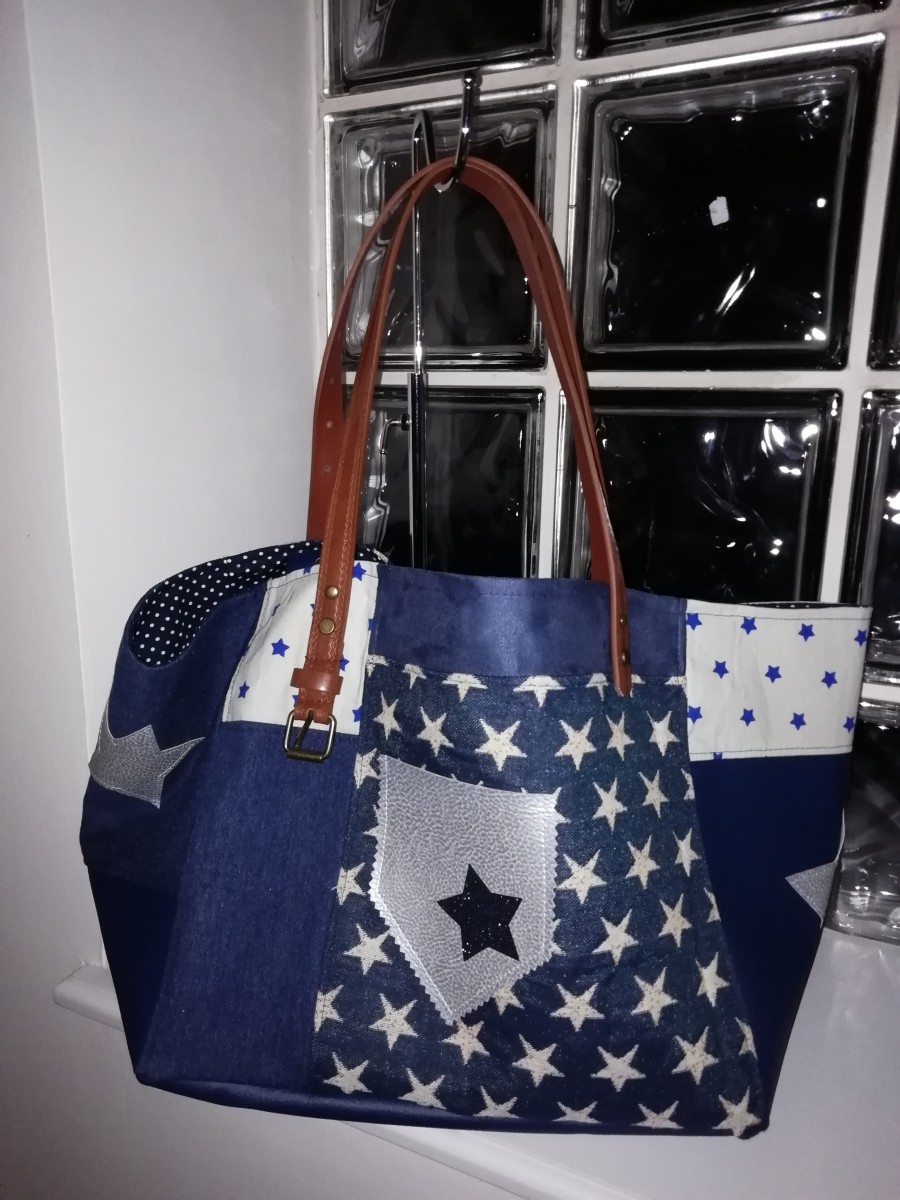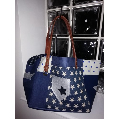 Sac cabas en divers tissus pouvant êtres portés sur l'épaule.Intérieur coton avec 3 poches de rangements et porte clefs.